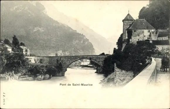 Ak Saint Maurice Kanton Wallis, Pont sur le Rhône