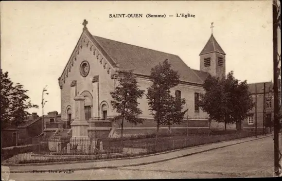 Ak Saint Ouen Somme, The Church, Kirche, Außenansicht