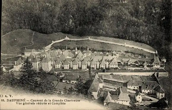 Ak Saint-Pierre-de-Chartreuse Isère, Couvent de la Grande Chartreuse, Vue générale réduite et...
