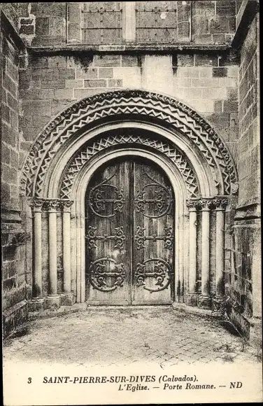 Ak Saint-Pierre-sur-Dives Calvados, Porte Romane de l´Église