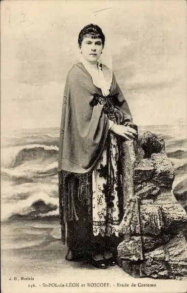 Ak Saint Pol de Léon Finistère, Frau in bretonischer Tracht