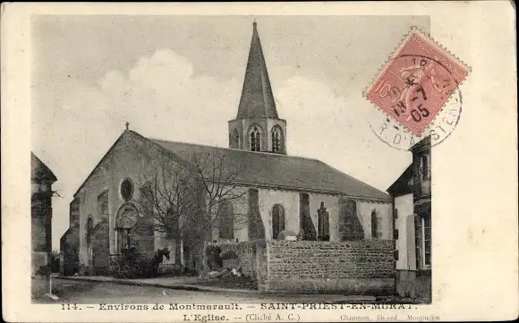 Ak Saint Priest en Murat Allier, Eglise, vue générale