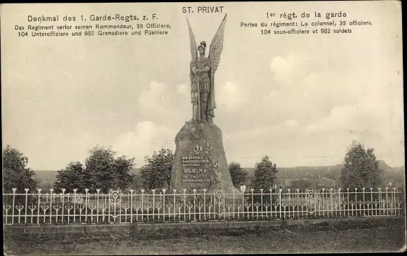 Ak Saint Privat la Montagne Sankt Privat Moselle, Denkmal de 1. Garde-Regts. z.F., Kriegsmuseum 1870