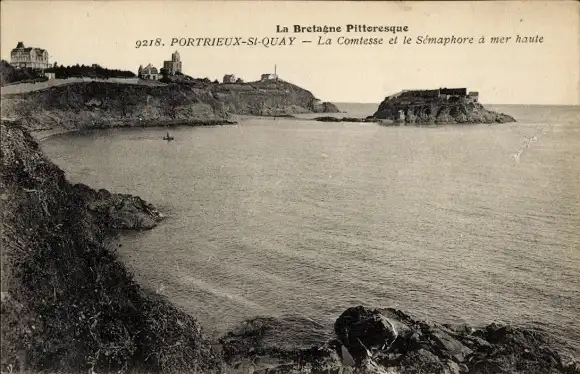 Ak Saint Quay Portrieux Cotes d'Armor, Comtesse, Semaphore a mer haute