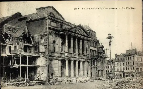 Ak Saint Quentin Aisne, En Ruines, Le Theatre, zerstörtes Theater
