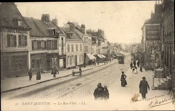 Ak Saint Quentin Aisne, La Rue d'Isle