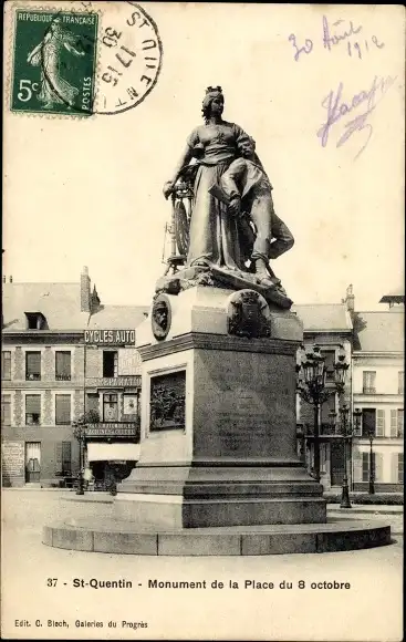 Ak Saint Quentin Aisne, Monument de la Place du 8 octobre