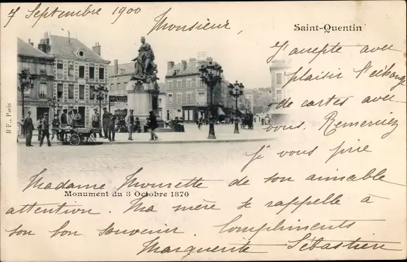 Ak Saint Quentin Aisne, Monument du 3 Octobre 1870