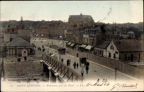 Ak Saint Quentin Aisne, Panorama pris du Pont