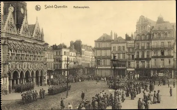 Ak Saint Quentin Aisne, Rathausplatz, Appell, Parade