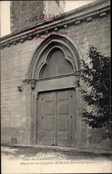 Ak Saint Rambert l'Ile Barbe Rhône, Chapelle de Notre Dame de Grace, Porte