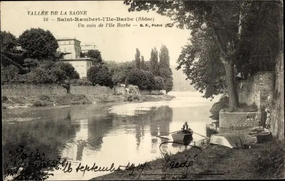 Ak Saint Rambert l'Ile de Barbe Rhône, Un coin de l'Ile Barbe, Ruderboot