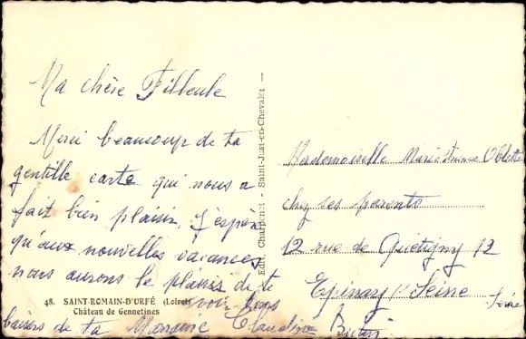 Ak Saint Romain d'Urfe Loire, Chateau de Gennetines