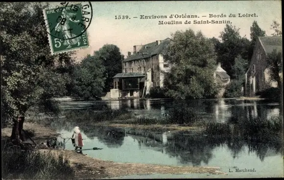 Ak Saint Santin Loiret, Bords du Loiret, Moulins, Wäscherin