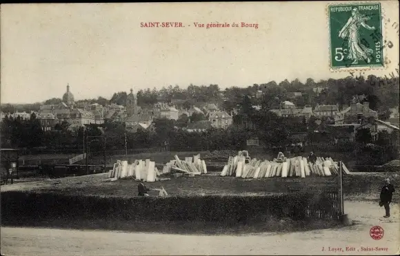Ak Saint Sever Calvados, Vue générale du Bourg, Grabplatten