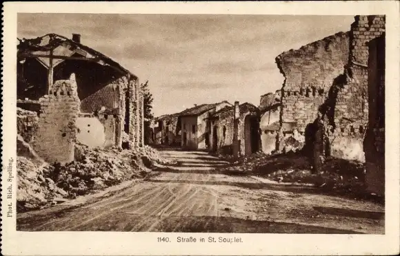 Ak Saint Souplet Nord, Gesamtansicht, zerstörte Häuser