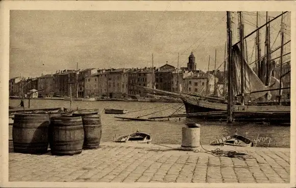 Ansichtskarte, Postkarte, Hafen, Schiffe, Boote, Dampfer, Boot