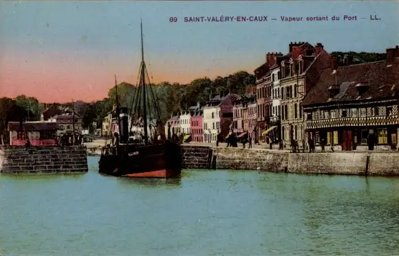 Ak Saint Valery en Caux Seine Maritime, Vapeur sortant du Port