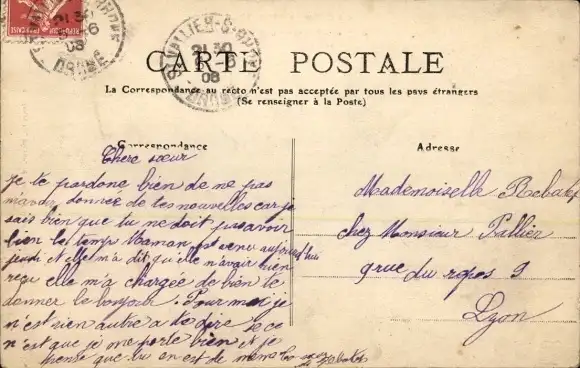 Zustand, siehe Scan, gelaufen, 1908 - ca 14 cm X 9 cm