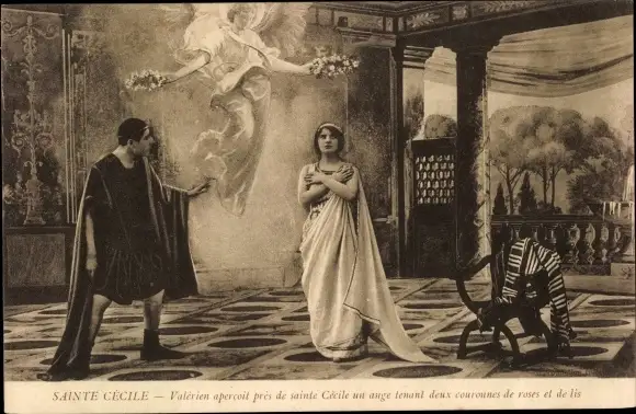 Ak Sainte Cecile, Valerien apercoit pres de sainte Cecile un ange
