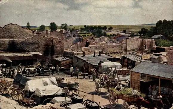 Ak Sainte Marie à Py Marne, Blick auf den Ort, deutsche Armeefuhrwerke, 1. WK
