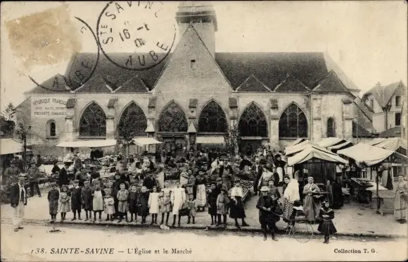 Ak Sainte Savine Aube, L'Eglise et le Marché