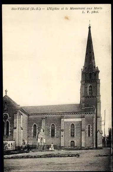 Ak Sainte Verge Deux Sevres, L'Eglise et le Monument aux Morts
