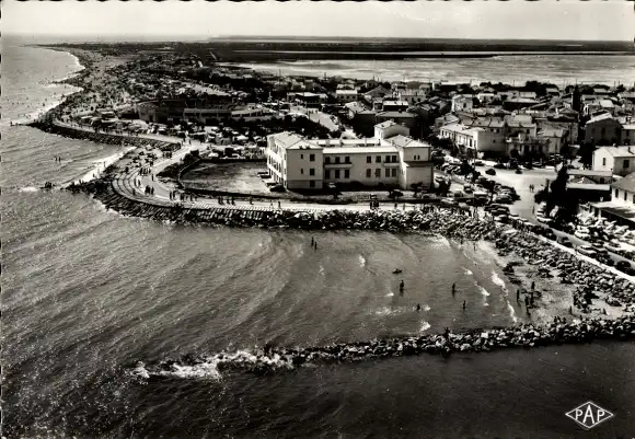 Ak Saintes Maries de la Mer Bouches du Rhone, Strand, Grand Large, Luftbild