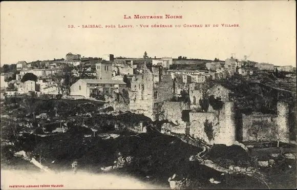 Ak Saissac Aude, Vue générale du chateau et du village