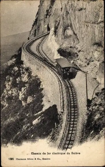 Ak Salève Haute Savoie, Zahnradbahn in Fahrt, Tunnel
