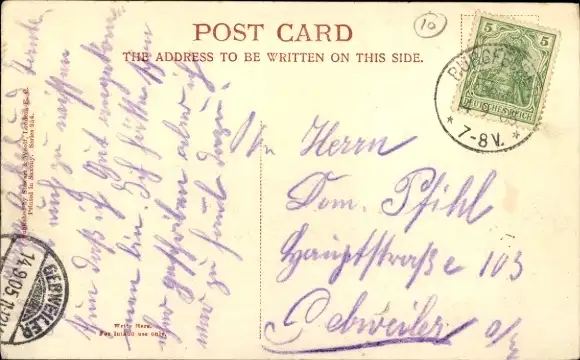 Zustand, siehe Scan, gelaufen, 1905 - ca 14 cm X 9 cm