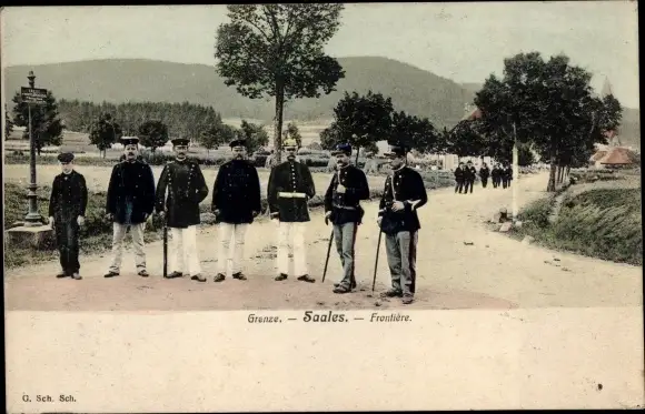Ansichtskarte, Postkarte, Grenze, Zoll, Grenzübergang, Staatsgrenze, Elsass
