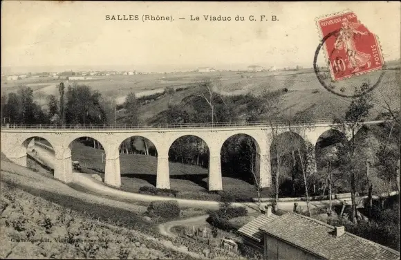 Ak Salles Rhône, Le Viaduc du C. F. B.