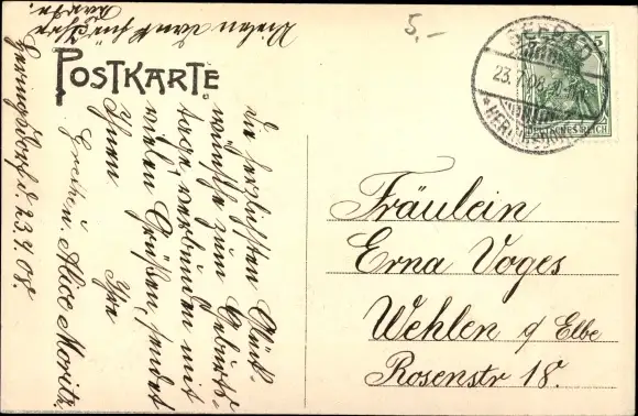 Zustand, siehe Scan, gelaufen, 1908 - ca 14 cm X 9 cm