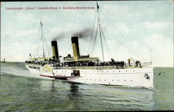 Ak Salondampfer Cobra, HAPAG Seebäderdienst, Ansicht Steuerbord