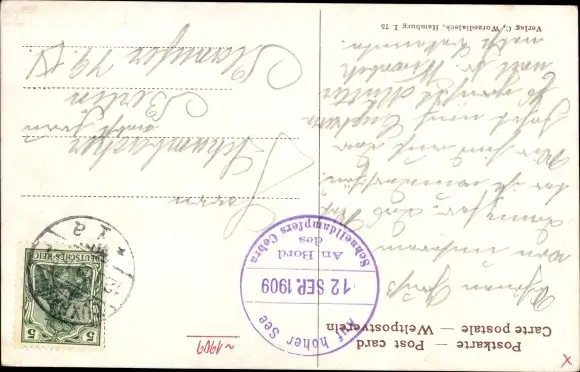 Zustand, siehe Scan, gelaufen, 1909 - ca 14 cm X 9 cm
