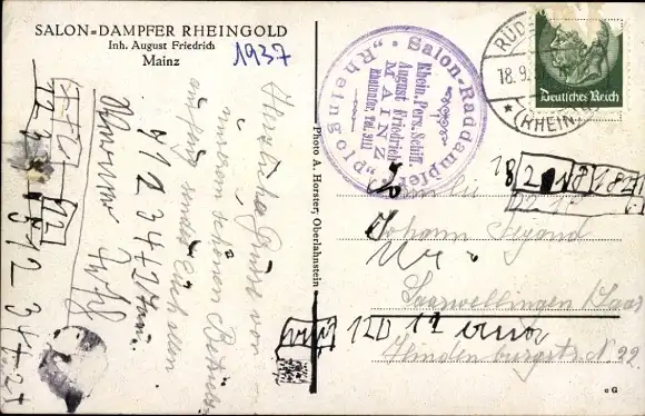 Zustand, siehe Scan, gelaufen, 1937- Inh. August Friedrich - ca 14 cm X 9 cm