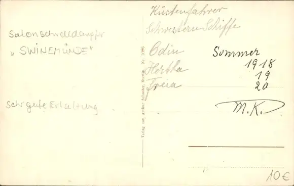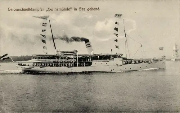 Ak Salonschnelldampfer Swinemünde in See gehend, Reederei Braeunlich