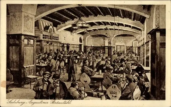 Ak Salzburg in Österreich, Augustiner Bräustübl, gesellige Runde