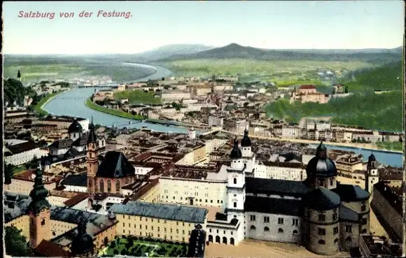 Ak Salzburg in Österreich, Blick von der Festung auf den Ort