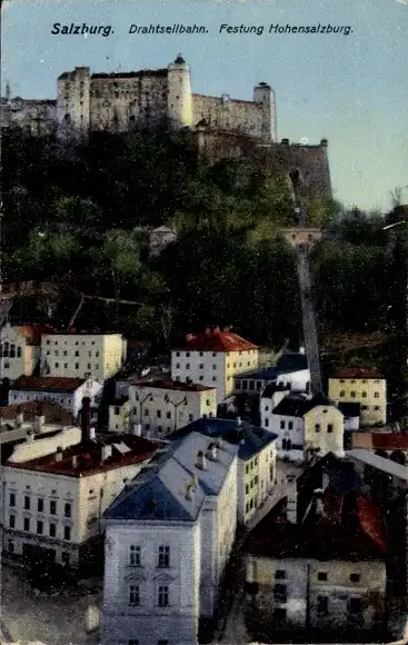 Ak Salzburg in Österreich, Festung Hohensalzburg, Drahtseilbahn