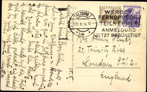 Zustand, siehe Scan, gelaufen, 1934 - ca 14 cm X 9 cm