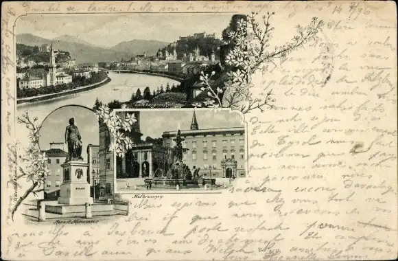 Ak Salzburg in Österreich, Teilansicht, Brunnen, Denkmal