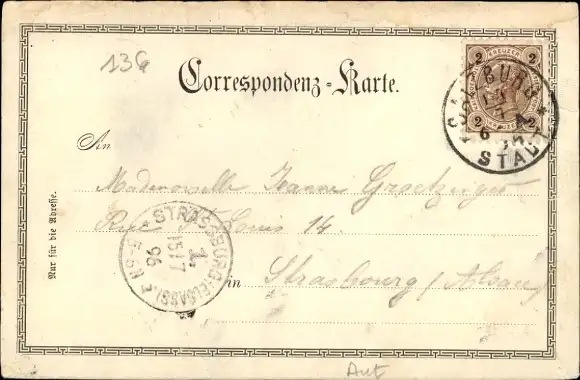 Zustand, siehe Scan, gelaufen, 1896 - ca 14 cm X 9 cm