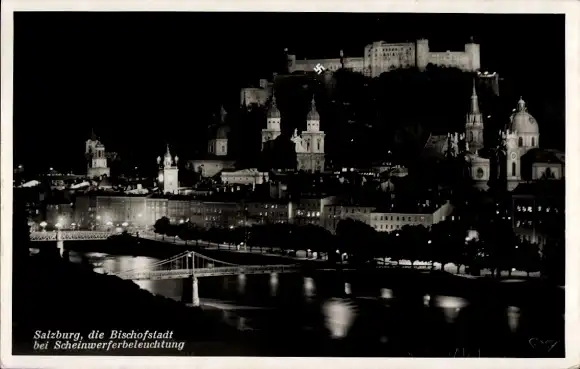 Ak Salzburg in Österreich, Teilansicht bei Nacht