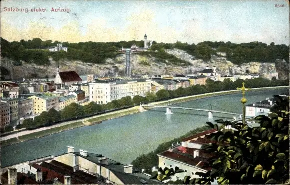 Ak Salzburg in Österreich, Totale, elektrischer Aufzug