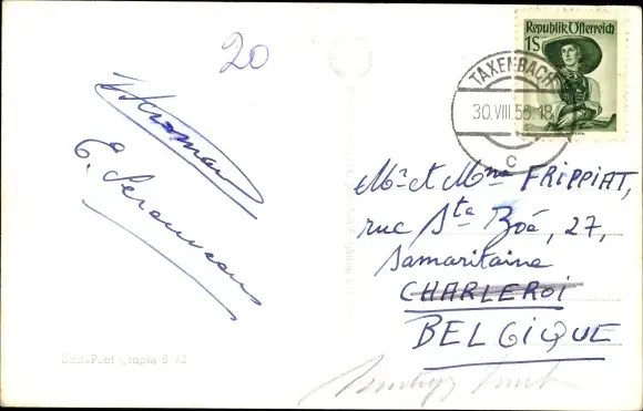 Zustand, siehe Scan, gelaufen, 1955 - ca 14 cm X 9 cm