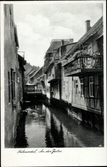 Ak Salzwedel in der Altmark, An der Jeetze, Wohnhäuser