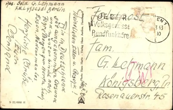 Zustand, siehe Scan, gelaufen, 1943 - ca 14 cm X 9 cm