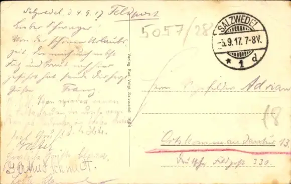 Zustand, siehe Scan, gelaufen, 1917 - ca 14 cm X 9 cm